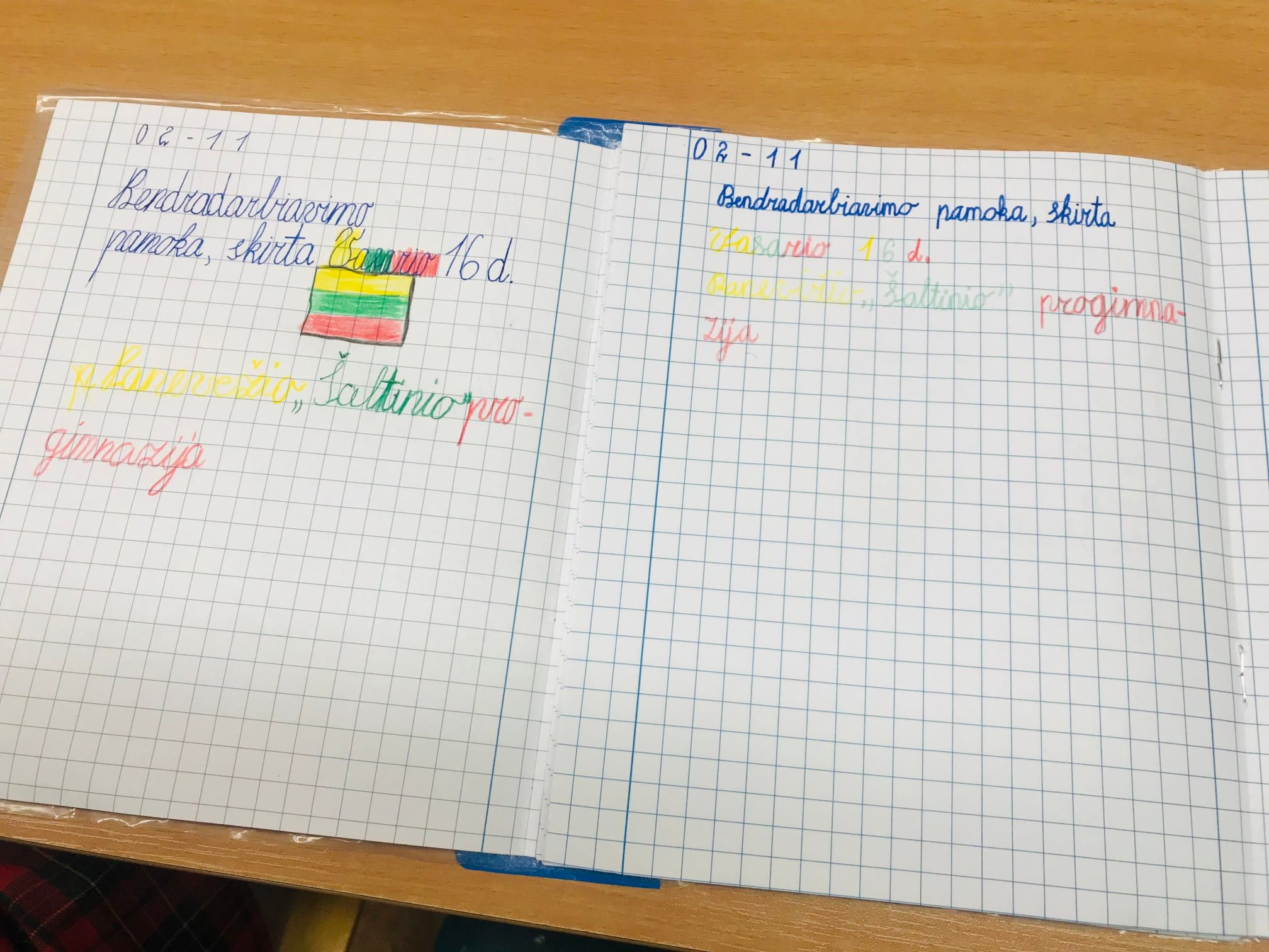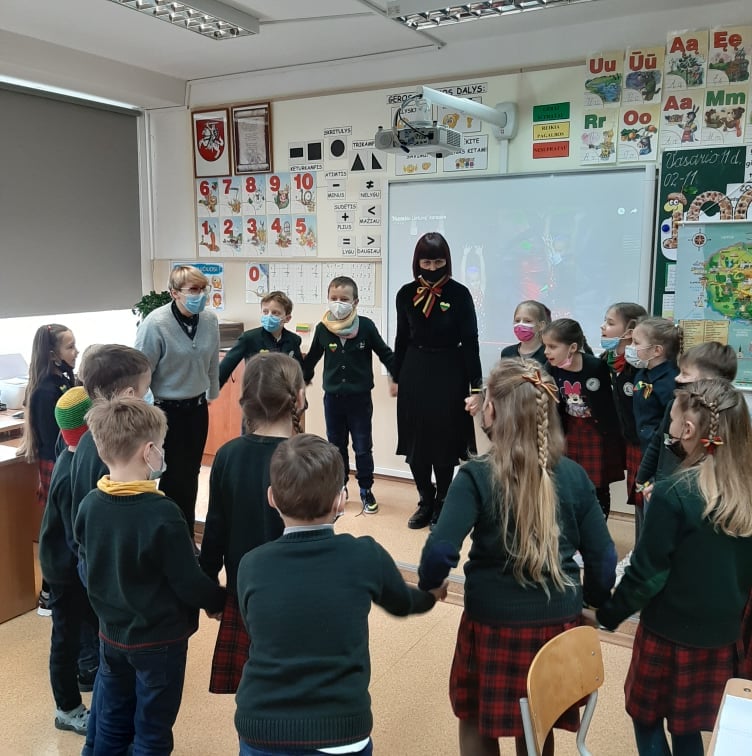 1c klasės mokiniai vasario 11 d. dalyvavo didžiausioje bendradarbiavimo pamokoje, skirtoje Vasario 16-ajai paminėti. Pamoką pradėjo kartu su savo partneriais ir draugais – Panevėžio „Šaltinio“ progimnazijos pirmokų klase ir jų mokytoja Žiede. Jaudinanti pirmoji pažintis, keli įdomūs faktai apie miestus (Panevėžys –Alytus) ir bendra veikla tęsė dieną. Vaikai ir piešė, ir rašė, ir dainavo, deklamavo – visi gražiausi žodžiai buvo skirti Lietuvai.