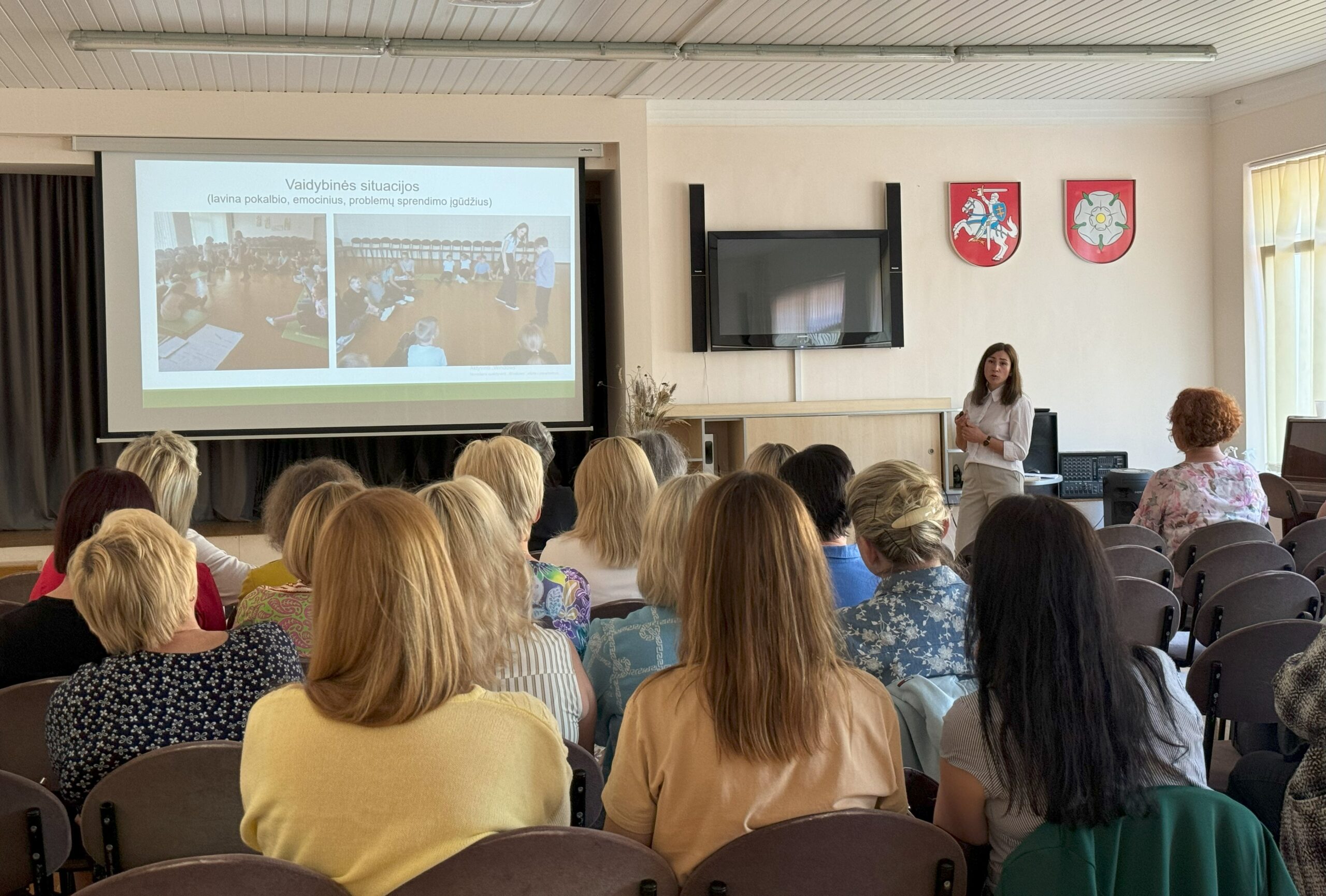 Birželio 13 d. gerosios praktikos renginyje Alytaus miesto pradinių klasių mokytojams „Poreikių įvairovė. Žingsniai į sėkmę“ švietimo pagalbos specialistės dalijosi patirtimis ir įžvalgomis iš Erasmus+ projekto „Visi mes turime galių” mokymų, darbo stebėjimo vizitų, analizavo su ugdymo kaita kylančius iššūkius, įgyvendinant atnaujinto turinio bendrąsias programas, kompetencijomis grįstą ugdymą ir užtikrinant įtraukiojo ugdymo principų įgyvendinimą. Mokyklos logopedė Loreta Pileckienė pristatė pranešimą „Praktinės veiklos ir užduočių rinkiniai minkštumo ženklo taikymo pratyboms” , socialinė pedagogė Inga Albutavičienė – „Visi mes turime galių: socialinės sąveikos įgūdžių ugdymas ir bendruomeniškumo stiprinimas per žaidybines veiklas”. Susirinkusius dalyvius lektoriai taip pat pakvietė išbandyti konkrečius veiksmus ir metodikas, kuriomis būtų galima užtikrinti, kad kiekvienas mokinys jaustųsi vertinamas ir integruotas, bei patyrinėti, kokiomis priemonėmis ir būdais galima būtų sukurti aplinką, kuri skatintų visapusišką mokinių augimą ir sėkmę. Laikas, skirtas pasidalinti gerosiomis patirtimis, neprailgo, išsineštos žinios ir patirtys per vasarą turės laiko išsigryninti ir jas bus galima pritaikyti jau kitais mokslo metais.