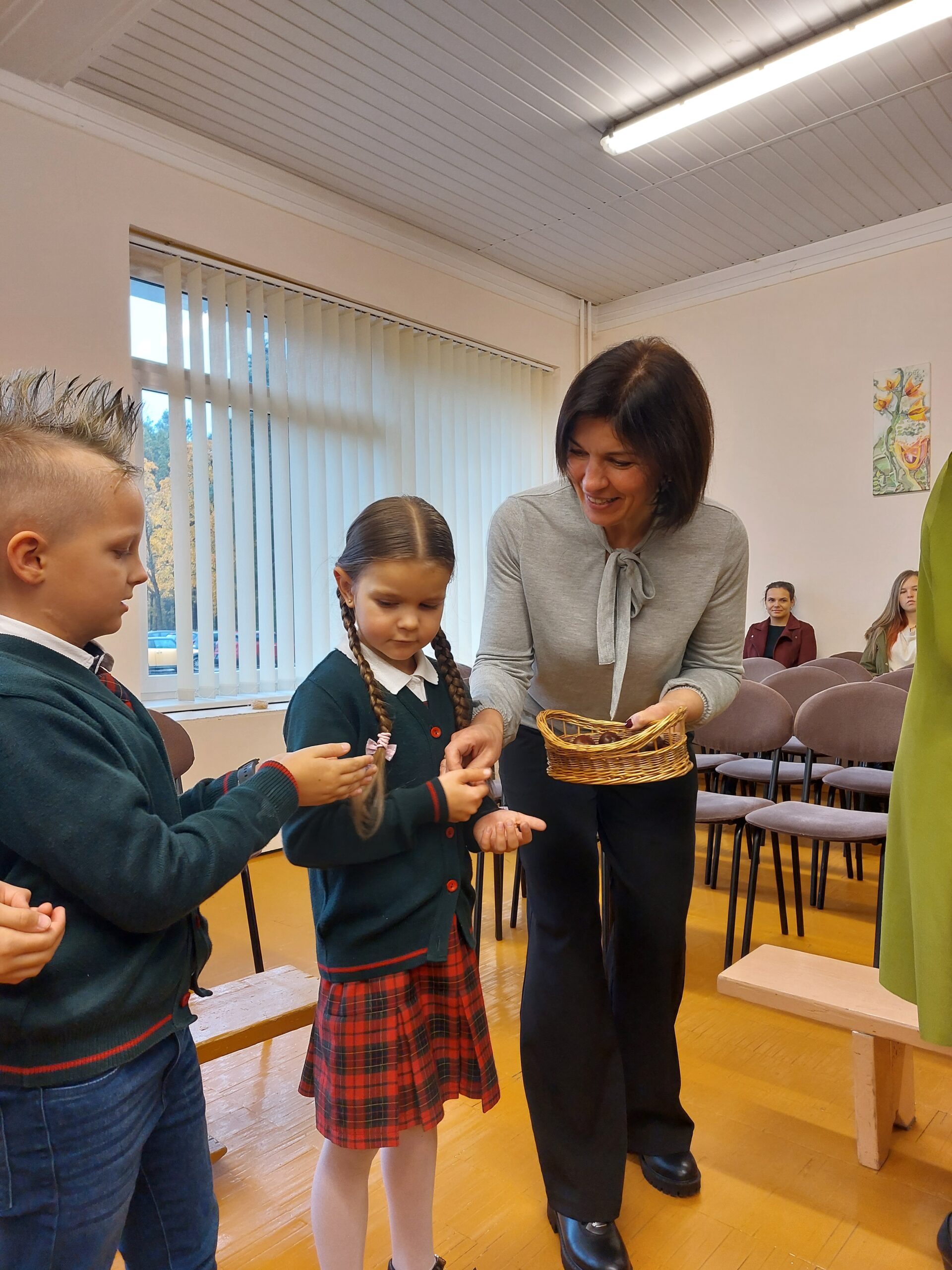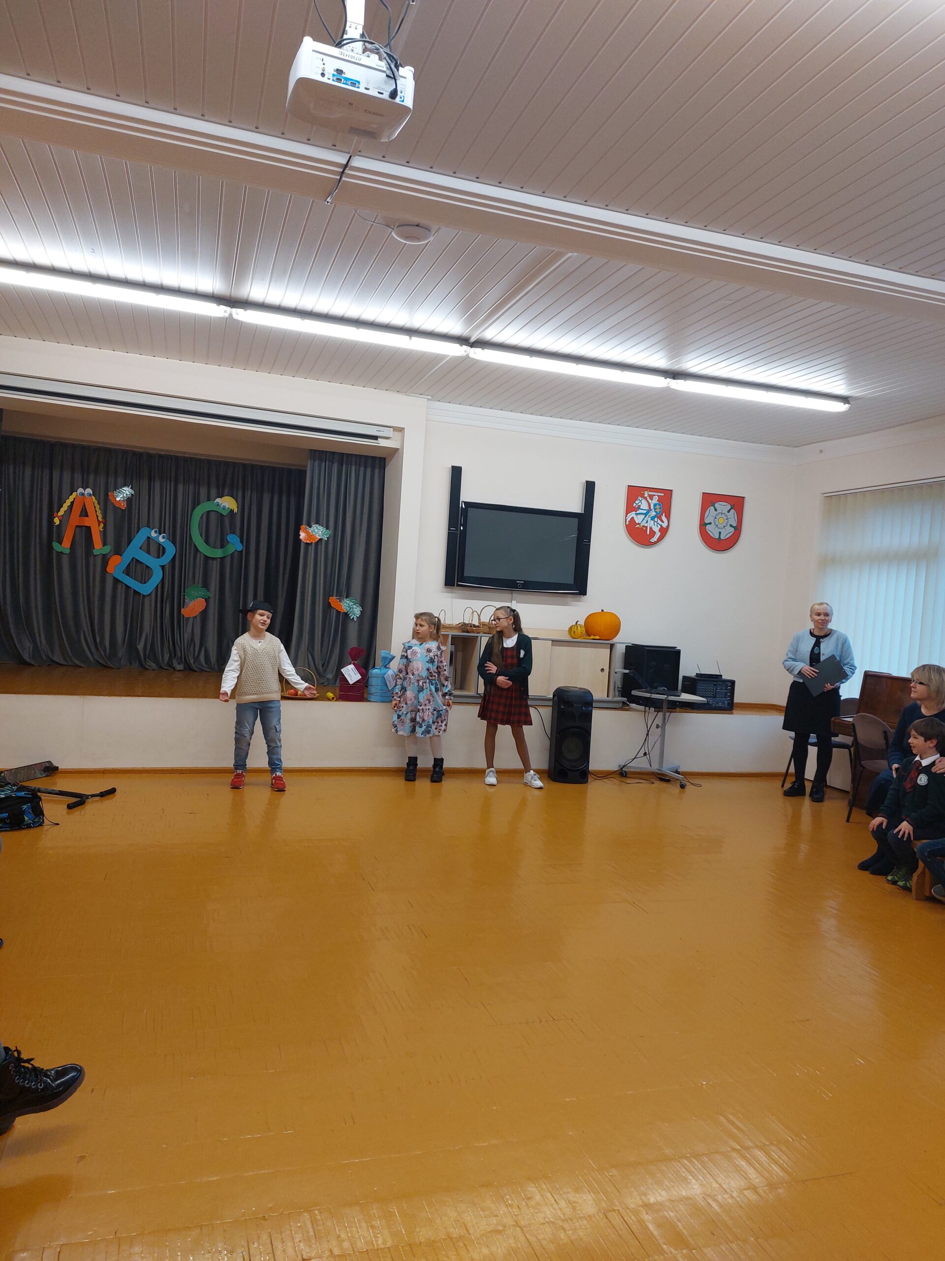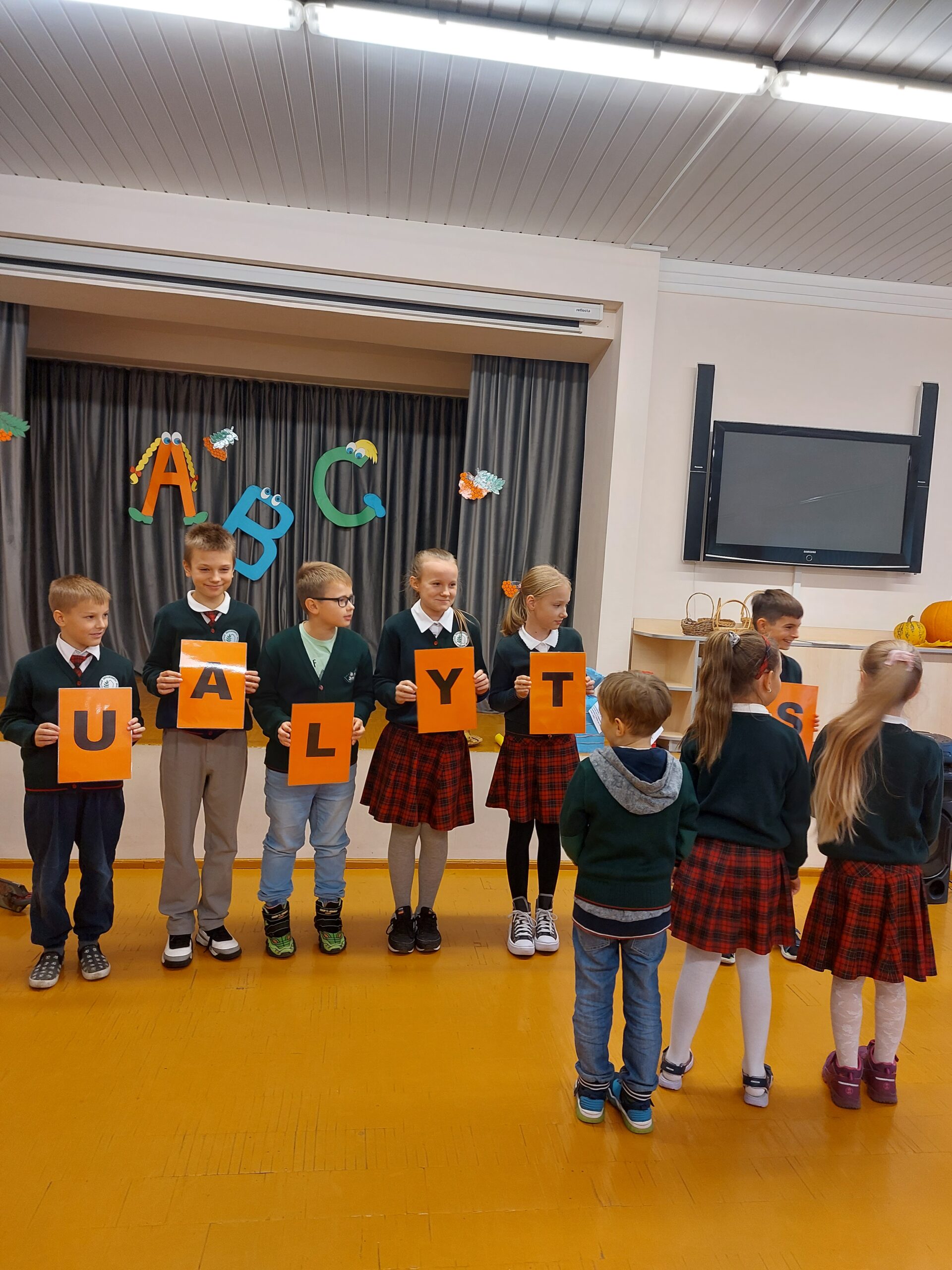 Apniukusį rudens rytą mokykloje girdėjosi linksmas vaikų klegesys. Diena neeilinė! Pirmokėliai nekantriai laukė krikštynų. Mažuosius į salę atlydėjo ketvirtokai. Žiniukė ir Pūkutė pasidžiaugė, kad pirmokai jau mokosi 40 dienų. Tad pats metas patikrinti ką sužinojo ir ar jau gali būti tikrais senamiestukais. Užduotys pasirodė lengvos ir į šventę atbėgusiam Nežiniukui, tačiau pirmokams jas atliko geriau. Vaikai smagiai žaidė, skaičiavo, sudėjo miesto pavadinimą, dainavo. Na, o koks gi mokinys be priesaikos? Pirmokai pasižadėjo kruopščiai mokytis, gerbti klasės draugus ir mokyklos darbuotojus. Žiniukė palinkėjo, kad mokslo platumose visus lydėtų sėkmė, įteikė atminties mikstūros ir pažymėjimus. Visi pirmokėliai tapo tikraisiais senamiestukais.
