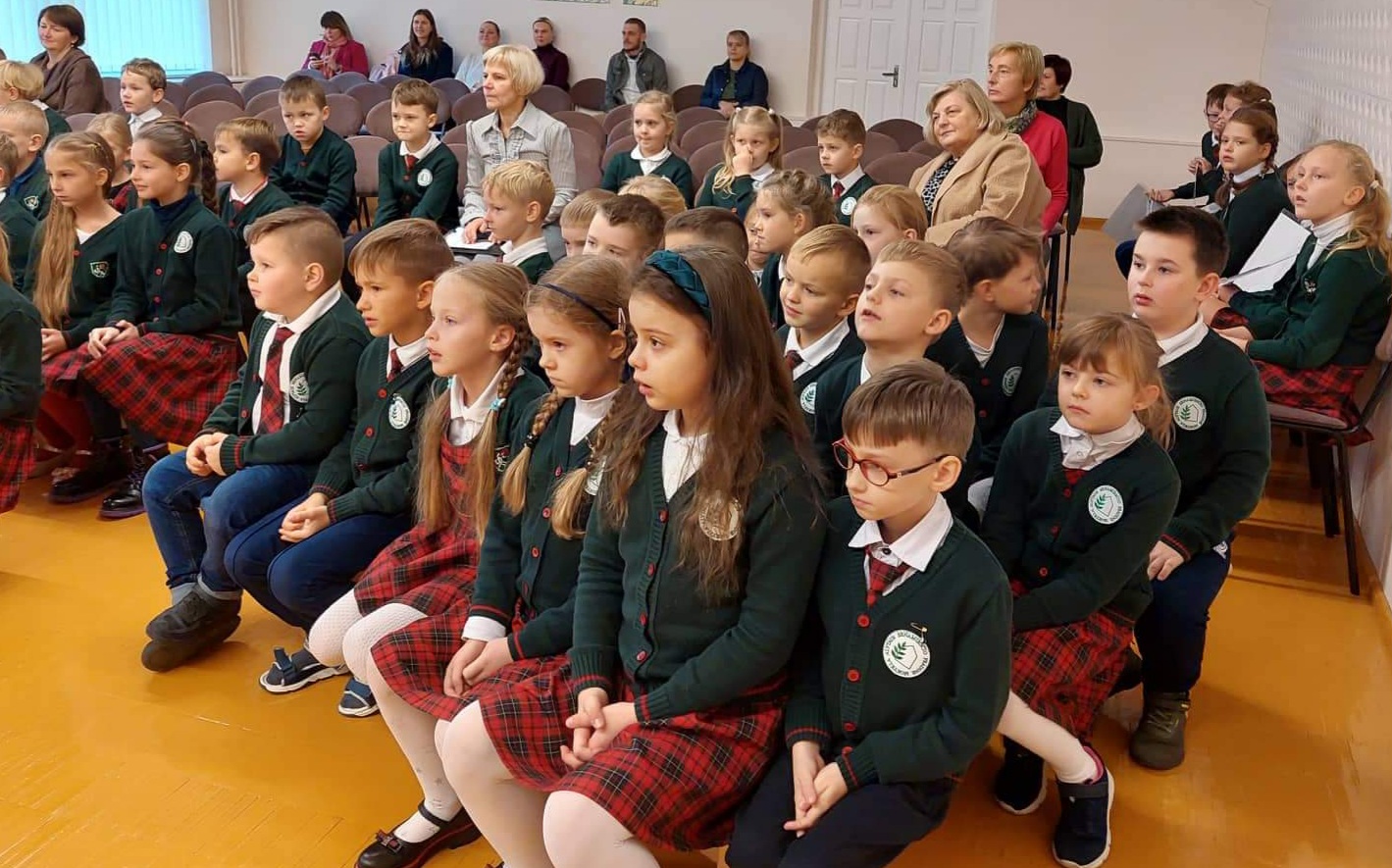 Atėjo metas pirmokėlius pakrikštyti ir pavadinti tikraisiais mokiniais. Klegėdami, švytėdami gera nuotaika pirmokai pažino raideles ir skaičius, smagiai padainavę dainelę pajudėjo šokio ritmu. Kartu su Saulute pažadėjo vienas kitą gerbti, mylėti, padėti, draugauti ir puikiu žmogumi užaugti. Sudainavę mokyklos dainą tapo tikrais Senamiesčio pradinės mokyklos mokiniais.