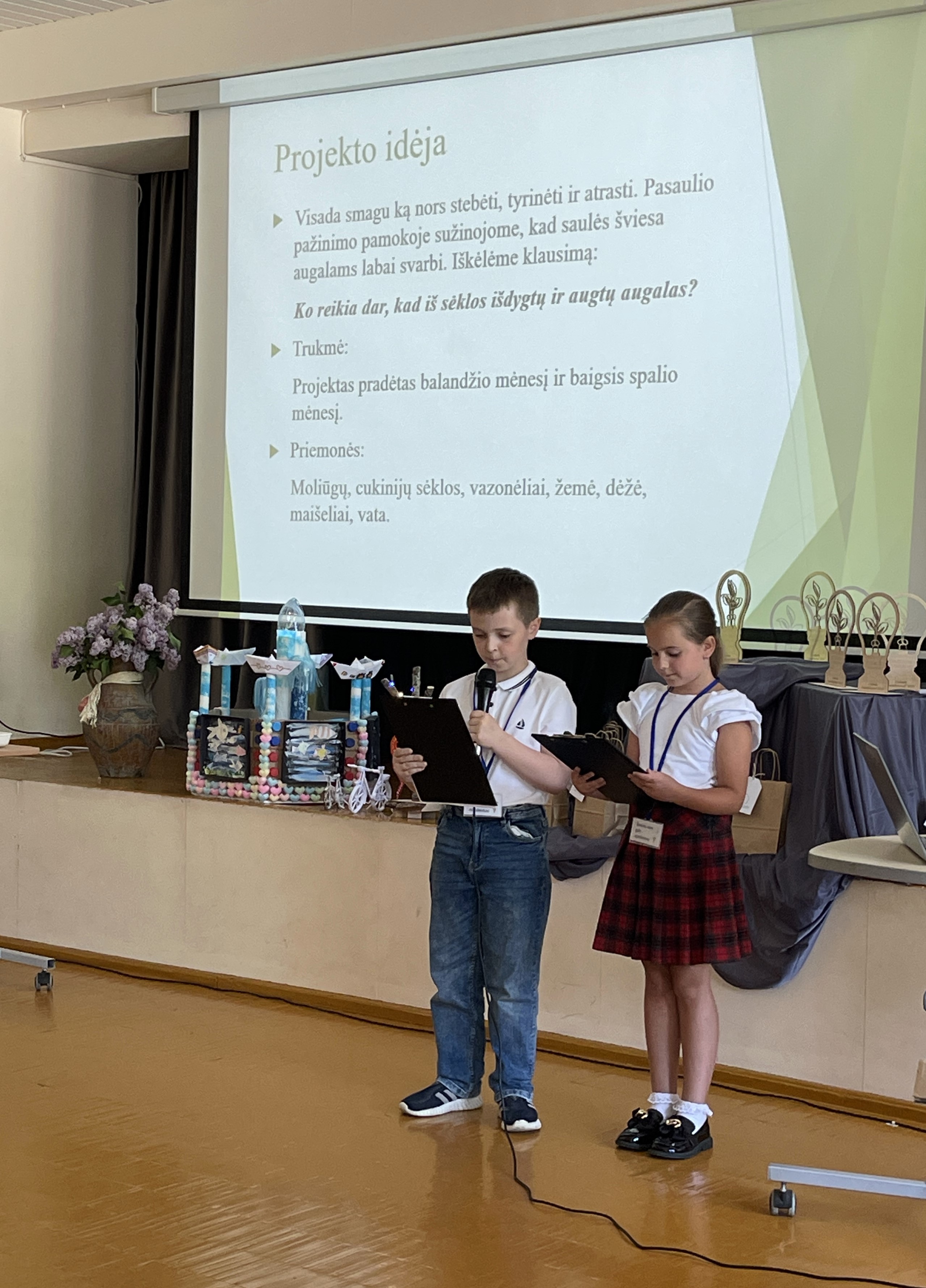 Po valandos iš kūrybinių dirbtuvių į salę sugrįžę konferencijos pranešėjai ir juos parengę mokytojai buvo apdovanoti padėkos raštais, atminimo dovanėlėmis. Mažojo mokslininko statulėlėmis 1–2 klasių grupėje nominuotos šios komandos: už tvarumą – Alytaus Panemunės progimnazijos 1a klasės mokiniai, pristatę pranešimą „Nuo medžiagos iki produkto“; už originalumą – Alytaus Dzūkijos mokyklos antrokės: Adelina Jakučionytė ir Emilija Poteliūnaitė, pademonstravusios svajonių fontaną; už kūrybiškumą – Alytaus Senamiesčio pradinės mokyklos antrokės: Ieva Mickevičiūtė ir Liepa Karčiauskaitė, kalbėjusios apie ateities transporto priemones. 3–4 klasių grupėje nominuotos šios komandos: už tvarumą – Alytaus „Sakalėlio“ pradinės mokyklos ketvirtokės: Auksė Čikotaitė ir Viktorija Jomantaitė, atlikusios tyrimą „Bioplastikai“; už originalumą – Alytaus Senamiesčio pradinės mokyklos 4c kl. mokinys Dovydas Jarusevičius, kalbėjęs apie tai, kaip saulės šviesa veikia augalo vystymąsi; už kūrybiškumą – Alytaus Panemunės progimnazijos ketvirtokų komanda, pristačiusi pranešimą „Fontanas – tekančio vandens paslaptis“.