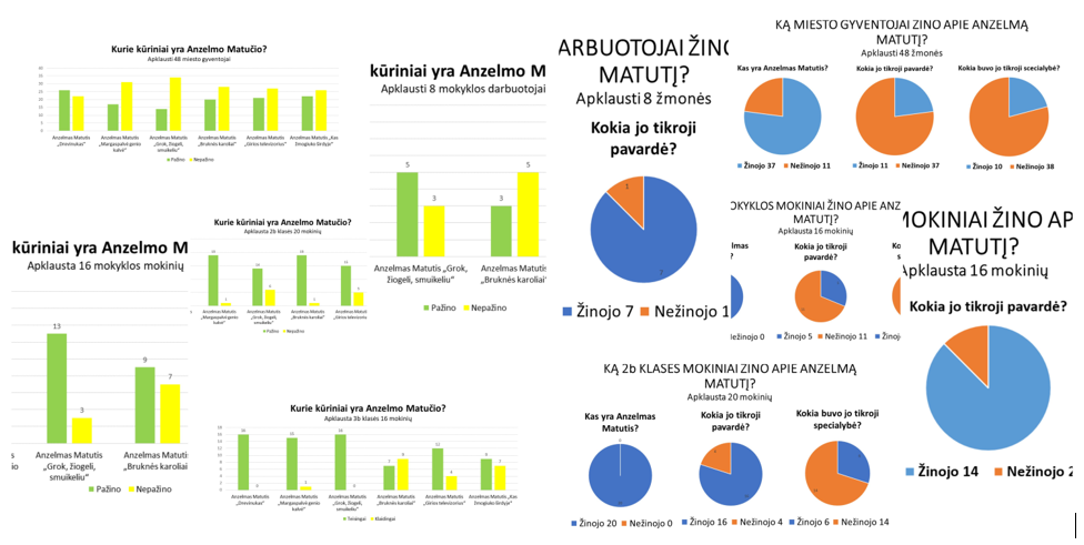 Siekdami paminėti Anzelmo Matučio 100-ąsias gimimo metines 2 ir 3 „b“ klasių mokiniai bendradarbiaudami įgyvendino projektą „Su Anzelmu Matučiu šimtmečio takučiu“. Projekte vaikai siekė išsiaiškinti ar alytiškiai žino, atpažįsta Anzelmo Matučio kūrinius ir atliko miesto gyventojų, mokyklos mokinių, mokytojų, darbuotojų apklausą. Apibendrinę rezultatus antrokai ir trečiokai pasidžiaugė, kad apklausoje į daugumą klausimų apie Anzelmą Matutį mokiniai atsakė taip pat teisingai, kaip ir mokyklos mokytojai, darbuotojai.