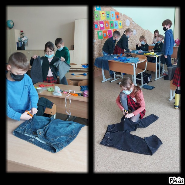 Tvaraus verslo vystytoja M. Paukštė mokinius mokė tausoti nenaudojamus drabužius, juos prikelti „antram gyvenimui“. Kiekvienas vaikas atskleidė savo kūrybiškumą, senus džinsus paversdamas naujomis prijuostėmis – smagu į namus parsinešti savo rankomis pasiūtą gaminį.